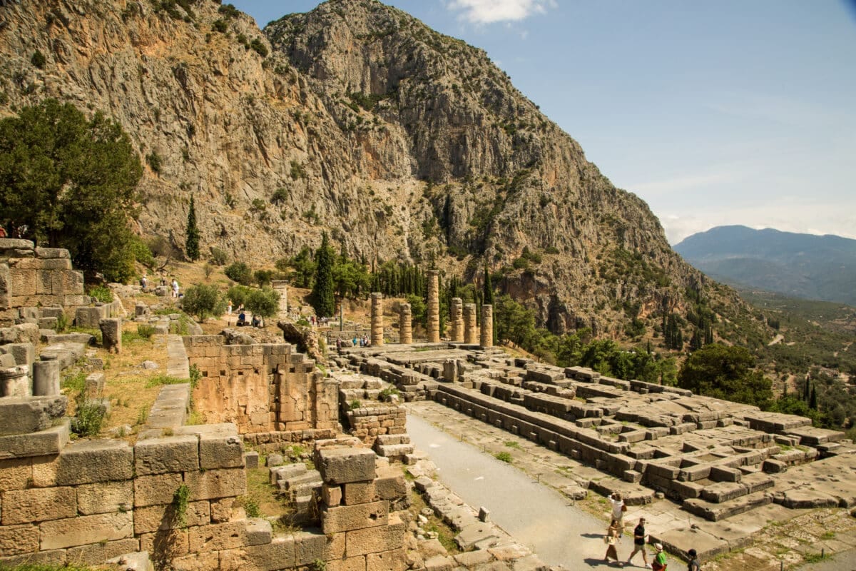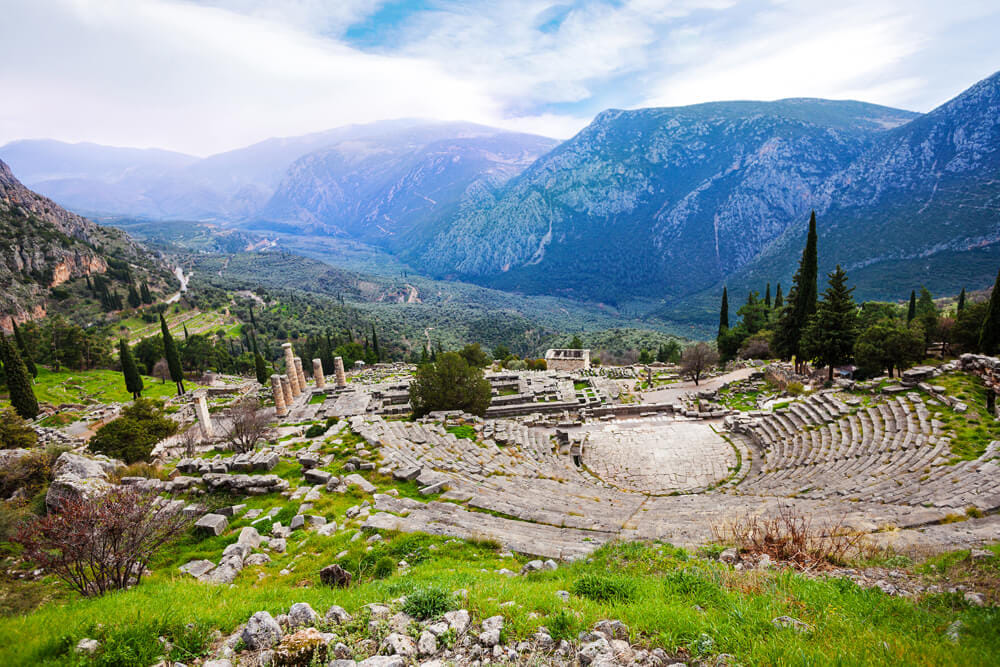 Next, ascend the slopes of Mount Parnassus to reach the legendary site of Delphi, once considered the “Navel of the Earth.” Stroll along the Sacred Way through the sanctuary, discovering treasuries, monuments, and the magnificent Temple of Apollo, where the famous Oracle delivered prophecies that shaped the fate of kings and empires. Marvel at the ancient theatre and stadium, and soak in panoramic views of the valley and the Gulf of Corinth below.